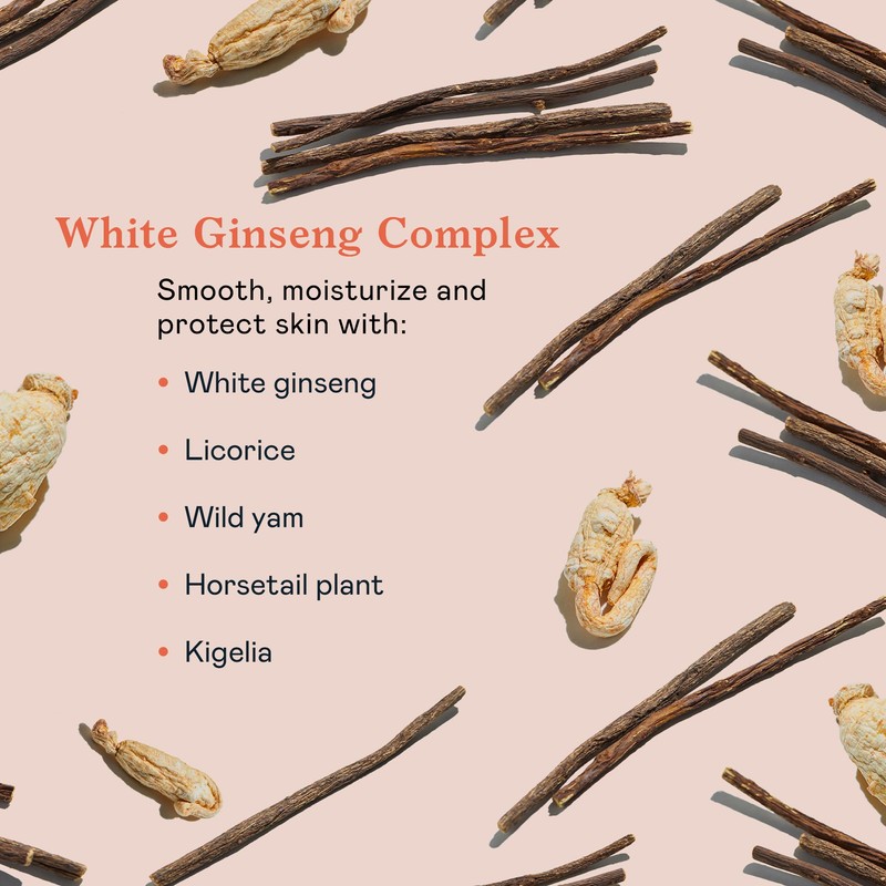 - Specialty Ingredients: Our White Ginseng Complex combines white ginseng with licorice, wild yam, horsetail plant and Kigelia to smooth and moisturize your skin. All ingredients are carefully tested for both instant visible results and long-term care.
