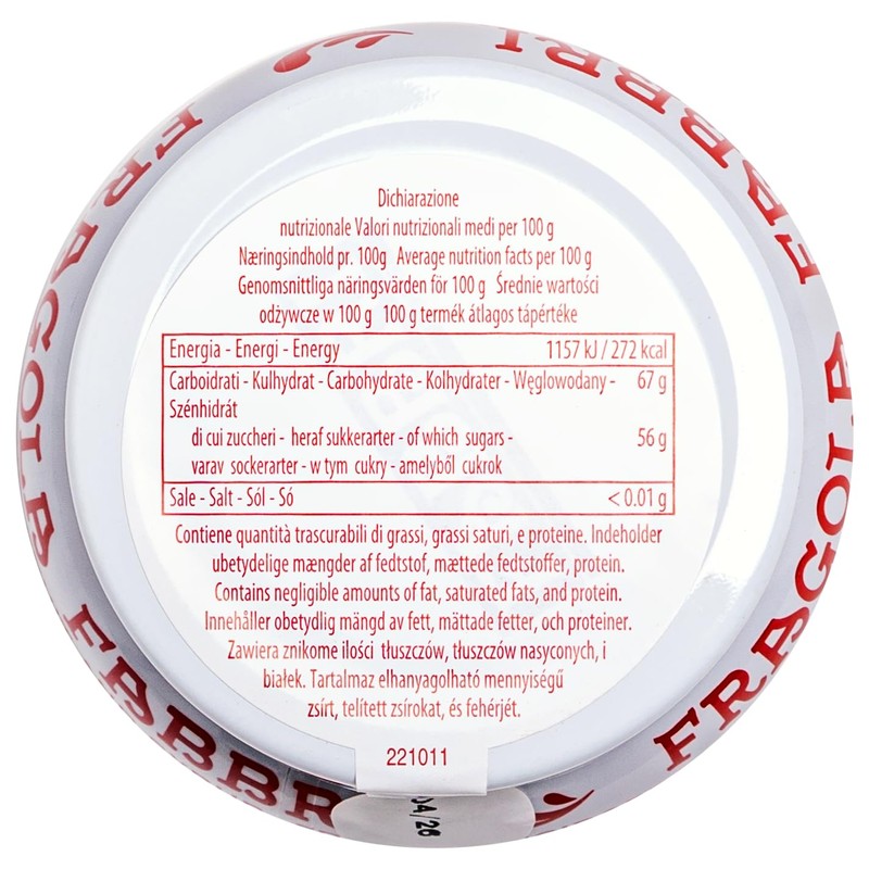 - Erdbeere Fabbri ist das Ergebnis einer geschickten und zarten Verarbeitung, die die Eigenschaften der Frucht hervorhebt. Die sorgfältig ausgewählten und in hochwertigem Erdbeersirup verarbeiteten Erdbeeren bleiben ganz, fest und genießen den Geschmack. In ihren Sirup getaucht, behalten sie den fruchtigen und leicht säuerlichen Duft und das Aroma der frischen Erdbeere.