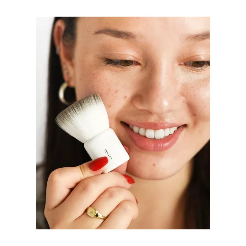 La brocha kabuki tiene un cabezal plano/redondo que la convierte en una herramienta 3-en-1, perfecta para aplicar nuestros maquillajes en crema así como los polvos compactos y sueltos, que le dará a tu rostro una cobertura óptima. Además, por su versatilidad, es ideal para llevar en tu cosmetiquera del diario o para un viaje. Con fibras veganas, esta brocha tiene un mango de madera cilíndrico que facilita su uso.