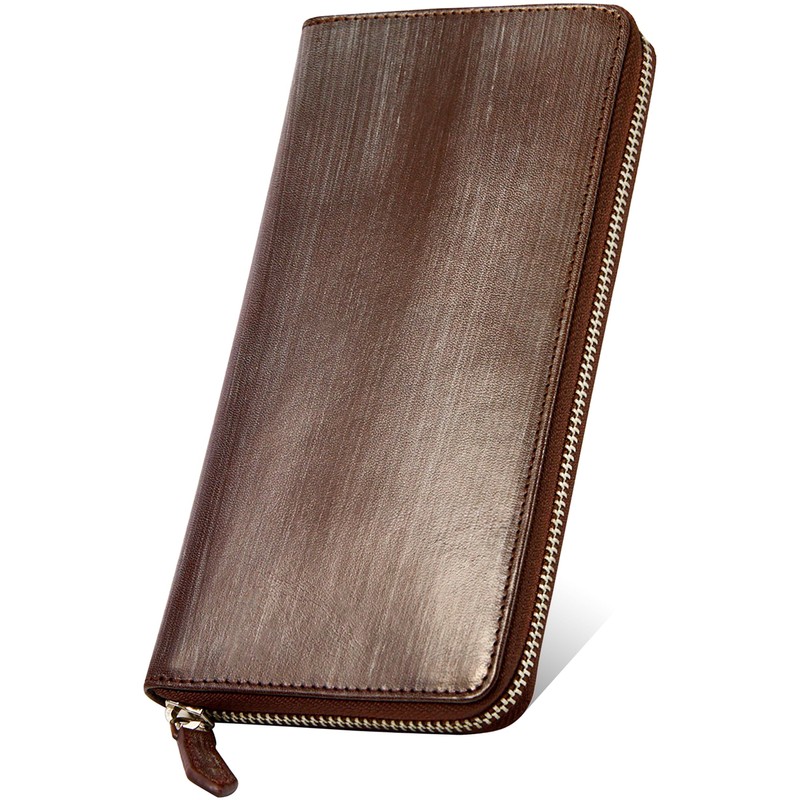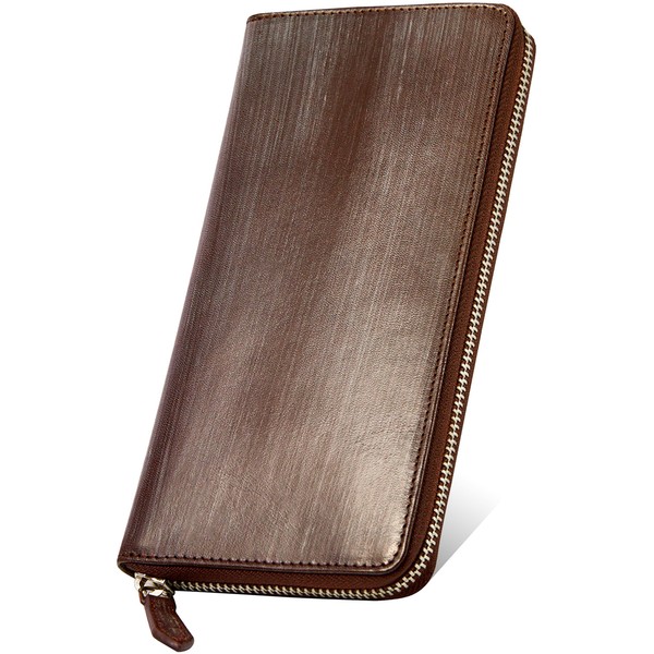 - Bridle Leather Round Zipper Long Wallet Made in Italy: This men's wallet is made in Japan by leading leather craftsmen from Yankee in Italy in 1989. This long wallet is a men's long wallet with a distinctive pattern of wax (wax), known as "bloom", and the texture of high-quality leather and a simple design, so it can be used in both casual and business settings