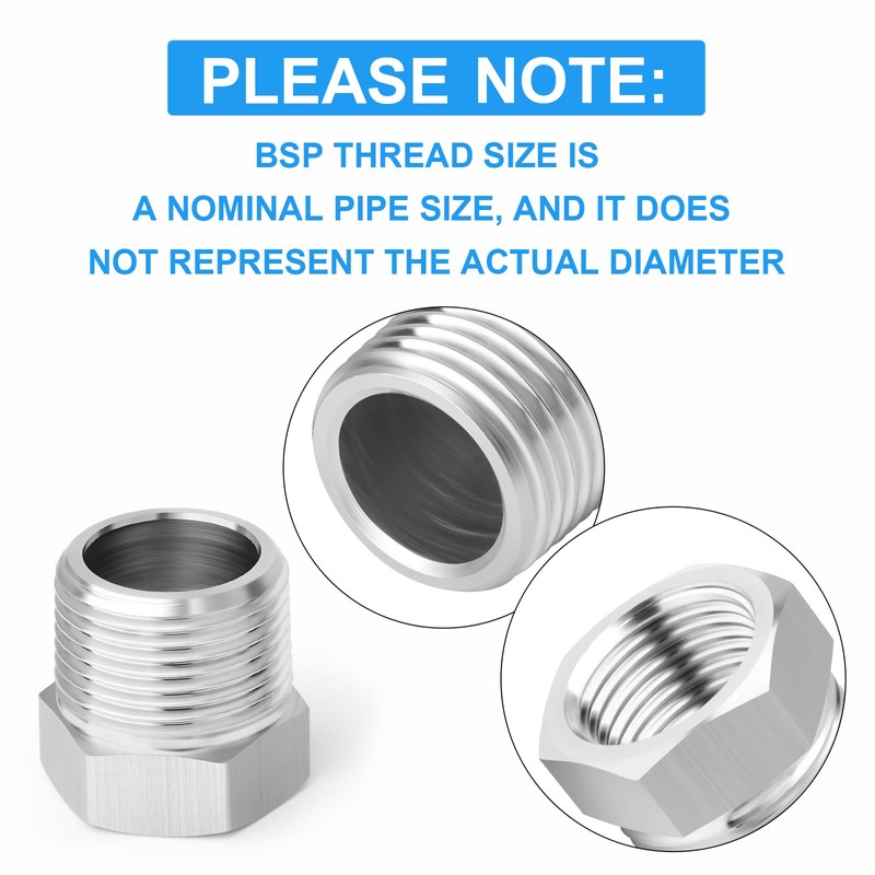 ERGAOBOY 10 Pcs 304 Stainless Steel Reducer Hex Bushing, 3/8" BSP Male to 1/4" BSP Female Pipe, Reducing Adapter Fitting Converter