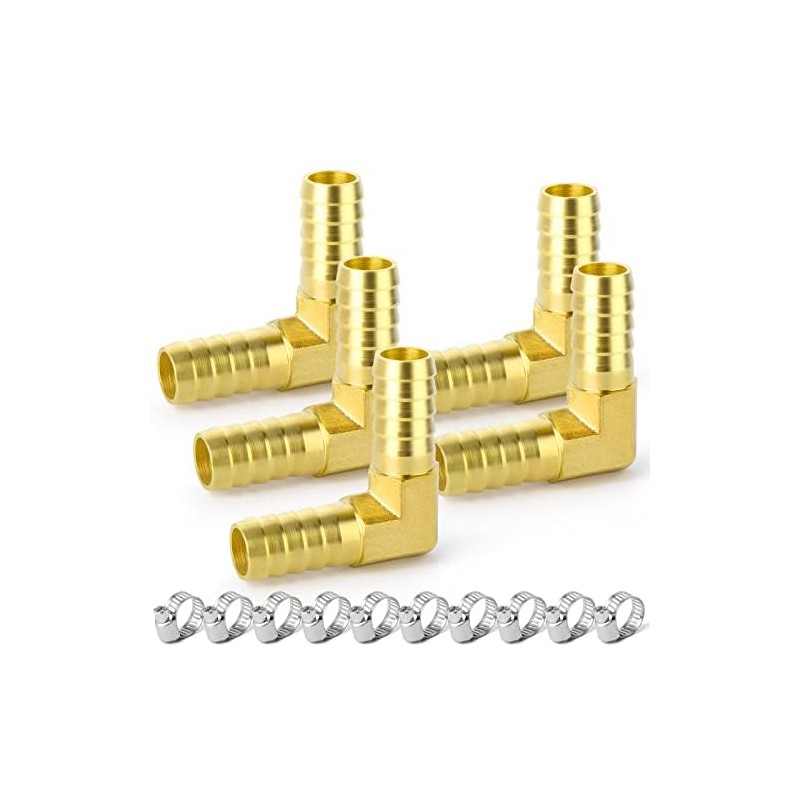 ERGAOBOY 5 Pcs 10 mm Brass 90 Degree Elbow Hose Nozzle, 2 Way L Shaped Elbow Hose Connection with 10 Clamps