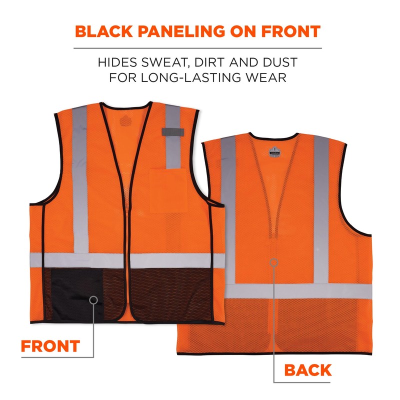 Ergodyne GloWear 8210Z-BK Class 2 Safety Vest, Hi Vis Mesh, Reflective, Black Front, Zipper