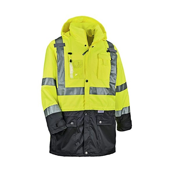 Ergodyne GloWear 8386 High Visibility Reflective Outer Rain Shell Jacket, X-Large, Lime
