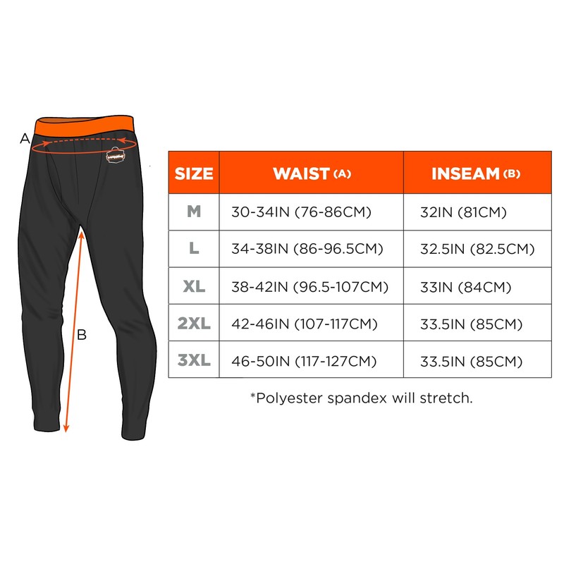 Ergodyne Men's Standard Lightweight Base Layer Pants, Black, Large