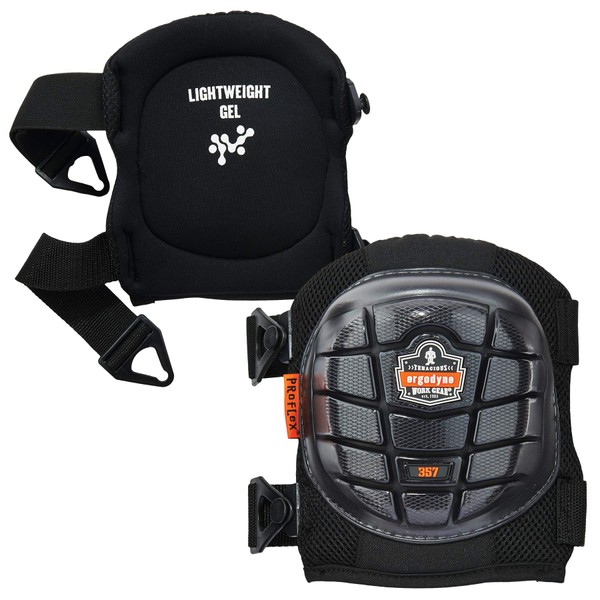 Ergodyne ProFlex 357 Professional Knee Pads, Protective Short Cap, Lightweight Gel Padded Technology, Adjustable Straps, Black