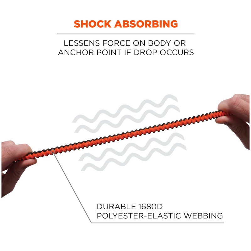- SHOCK ABSORBING - 1680D polyester-elastic webbing reduces the dynamic force on the body or other anchor point if drop occurs