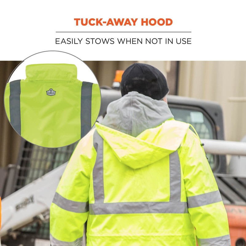 Ergodyne Standard High Visibility Reflective Lightweight Rain Jacket, Lime, 5XL