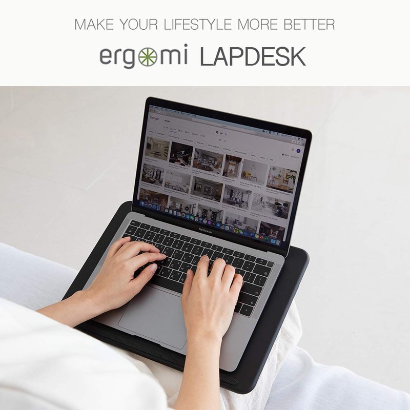 ergomi Portable Laptop Tray with Soft Cushion, Wrist Support, Dual-Sides Usage, Laptop Bed Tray Great for Reading, Writing, Notebook Using, Work from Home, Lapdesk Fit up to 14" Laptop, PU.