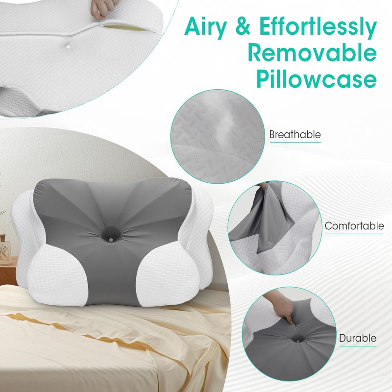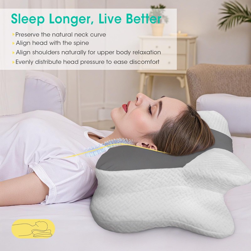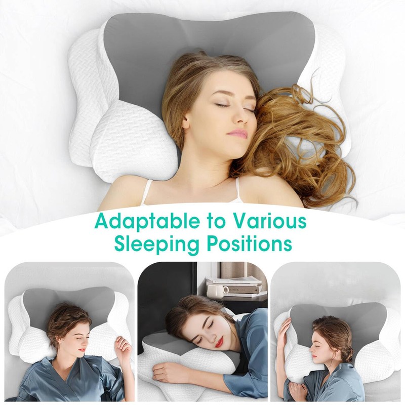 • Ergonomic Butterfly Design - Crafted as a premium butterfly pillow for neck pain and a top-tier ergonomic pillow for neck pain, this contour pillow gently cradles your head and neck, supporting proper spinal alignment—ideal for side sleepers, back sleepers, and even stomach sleepers. Its breathable, contouring memory foam adapts to your body’s shape, keeping your neck and shoulders in a neutral, relaxed position. The unique design encourages proper sleeping posture, helping to ease spinal soreness and reduce snoring for uninterrupted nighttime comfort.