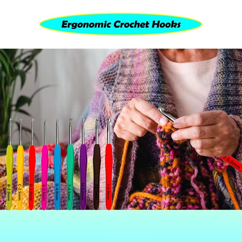 - Crochet Hooks Set with Storage Case - The set includes 9 hooks in different sizes(2.0mm~6.0mm), which are perfect for beginners and experienced crocheters alike. The hooks are also easy to store and carry, making them ideal for travel or on-the-go projects.