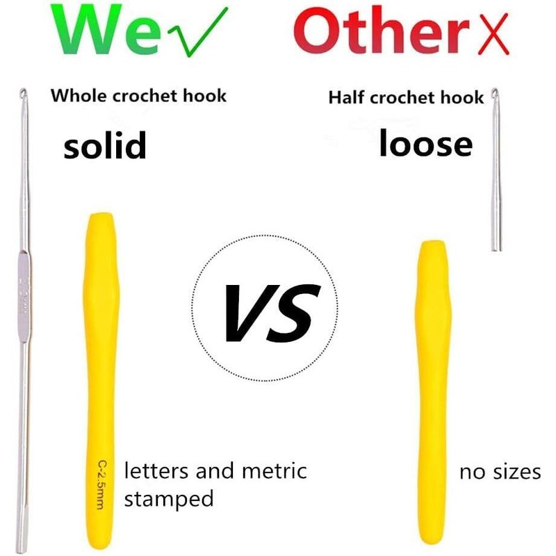 - Smooth Aluminum Crochet Head - The ergonomic crochet hooks are made of high-quality aluminum, which is durable, lightweight, and comfortable to hold.