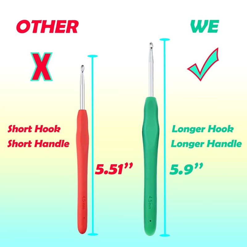 - Comfortable Grips - These crochet needles are designed with a smooth surface and a rubber handle, which can reduce hand fatigue during long-term use.