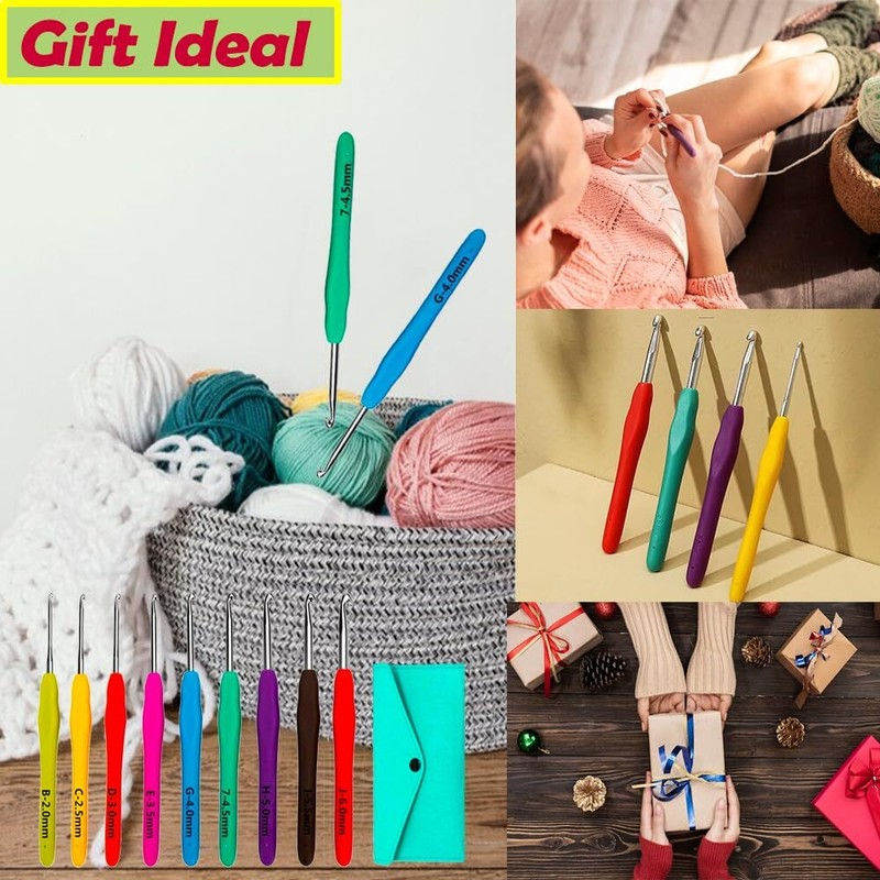 Ergonomic Crochet Hooks Set, 9 Sizes Crochet Hooks with Case 2.0mm~6.0mm