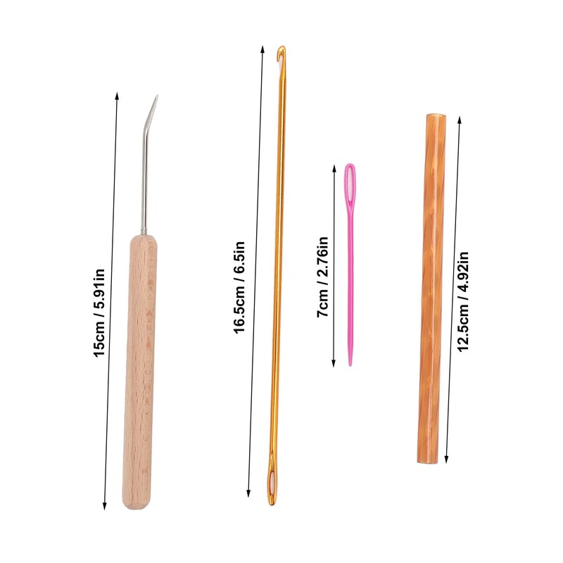 - WOODEN HANDLE: The thread goes through the barrel of the pen more smoothly and does not get tangled easily, the wooden shank curved needle is strong and smoothly, and the aluminum crochet hook with eye makes it easy to pull the thread through the barrel of the pen.