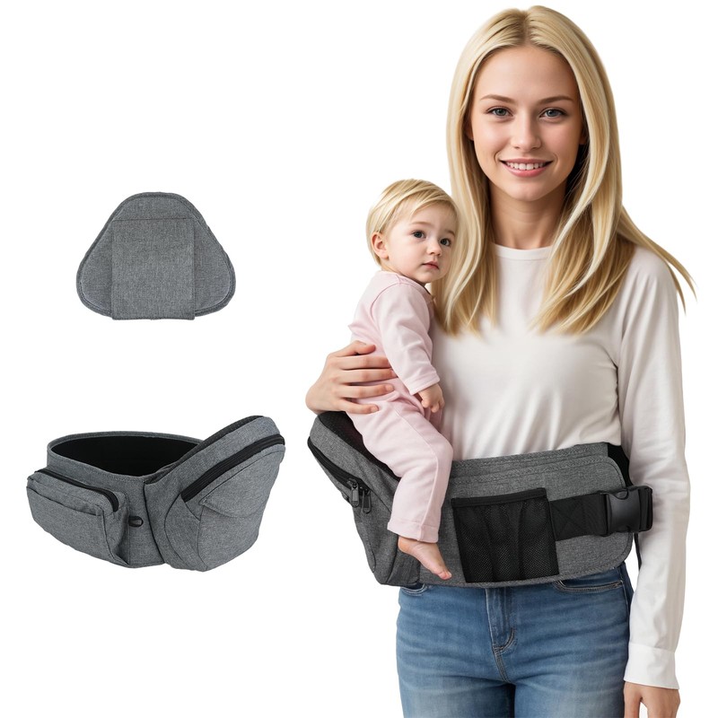 Ergonomic Hip Seat Baby Carrier with Waist Support, Lightweight Baby Hip Carriers from Newborn to Toddler, Adjustable Baby Waist Stool Seat for 6 Months Plus (Grey)