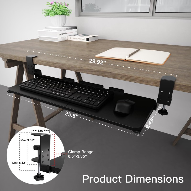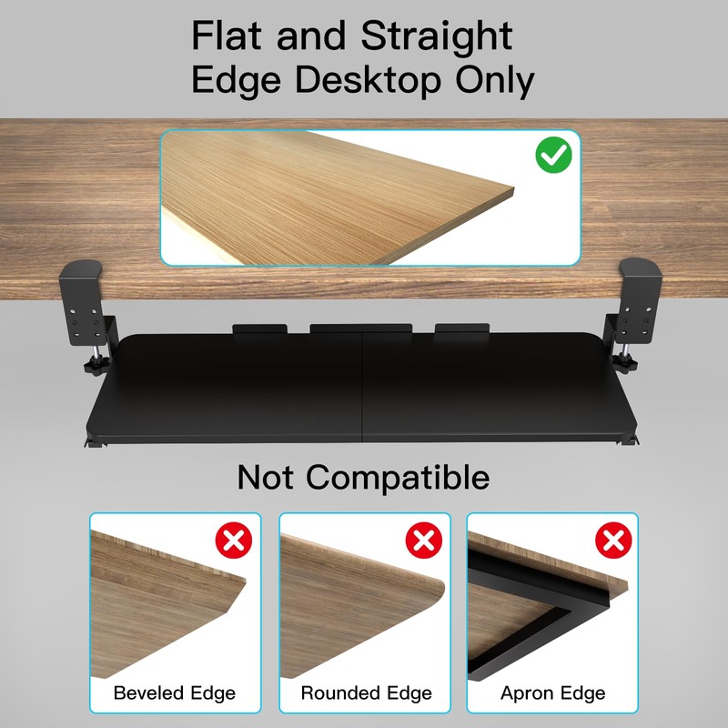 - Easy Installation: This under-desk keyboard tray comes with all the necessary hardware and detailed instructions for easy installation. Adjustable C-clamps allow for quick mounting without drilling.