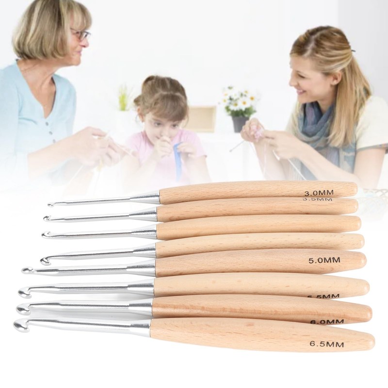 - [Multiple Sizes] : Offering 8 pieces of wood handle crochet hooks ranging from 3.0mm to 6.5mm for various knitting needs.
