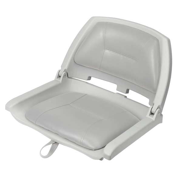 - Lightweight and Portable.Our plastic pontoon boat seat with backrest features a fold-down design and tie down strap, making it easy to store and transport. Whether you're on a small boat or a large vessel,this seat can be easily folded down and secured with the included hold-down strap, saving valuable space