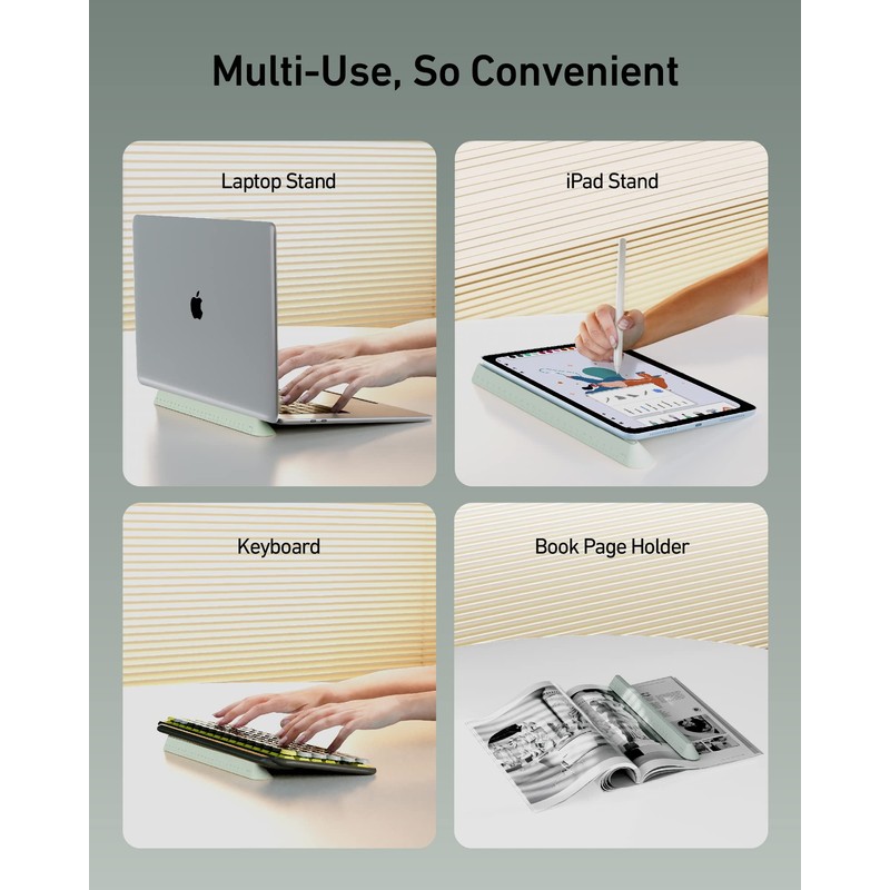 ergounion 3 in 1 Silicone Laptop Stand, Keyboard Riser for Ergonomic Typing/Reading, Portable Laptop Cooling Stand, for Home Office School and Travel, Oval Base, Macaron Green
