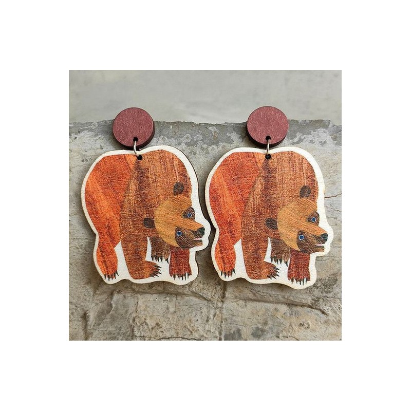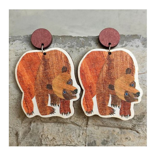 Eric Carle Children's Book Brow Bear Earrings Wood