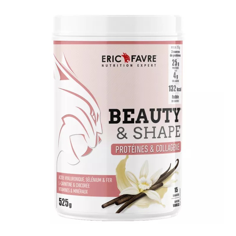 Eric Favre Beauty Shape is specially formulated to meet the needs of active, wellness-conscious women. Slimming, beauty, sport and well-being are the pillars of this unique product. No more dozens of dietary supplements to take every day! Beauty & Shake combines all the best ingredients and nutrients in a single shaker for optimum effectiveness. Whether it's for weight loss, muscle development, joint and bone well-being, or glowing, firmer skin, Beauty & Shake is the ideal breakfast snack.