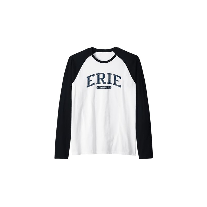 Erie Pennsylvania PA College University Style Blue Raglan Baseball Tee