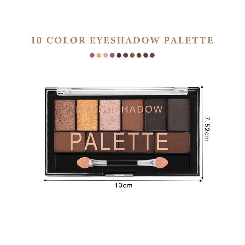 • 1. 10 vielseitige Farben für jeden Anlass:Diese Lidschattenpalette bietet zehn sorgfältig abgestimmte Farbtöne – von dezenten Nude- und Erdtönen bis hin zu kräftigem Schwarz und sanftem Rosé. Ob für das tägliche Business-Make-up, romantische Abendlooks oder dramatische Smokey Eyes – mit dieser Palette gelingen dir unzählige Stylings.
