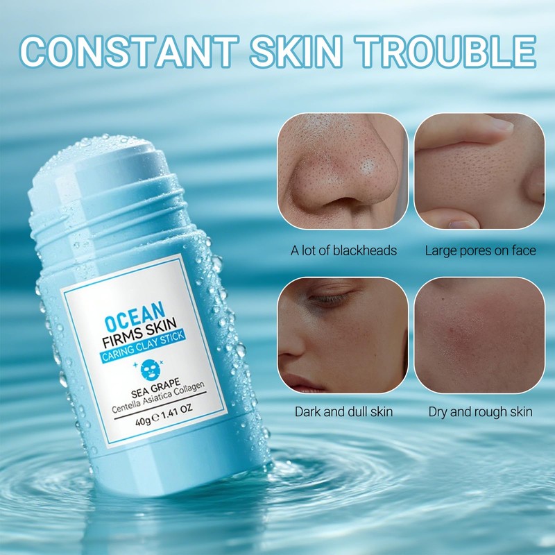 Erinde 2PCS Ocean Clay Mask Stick, Deep Cleanse Mask With Centella Asiatica Extract, Cleansing Clay Mud Mask for Deep Clean Pore Improve Skin Acne Facial Mask, Gentle Exfoliation, Oil Control