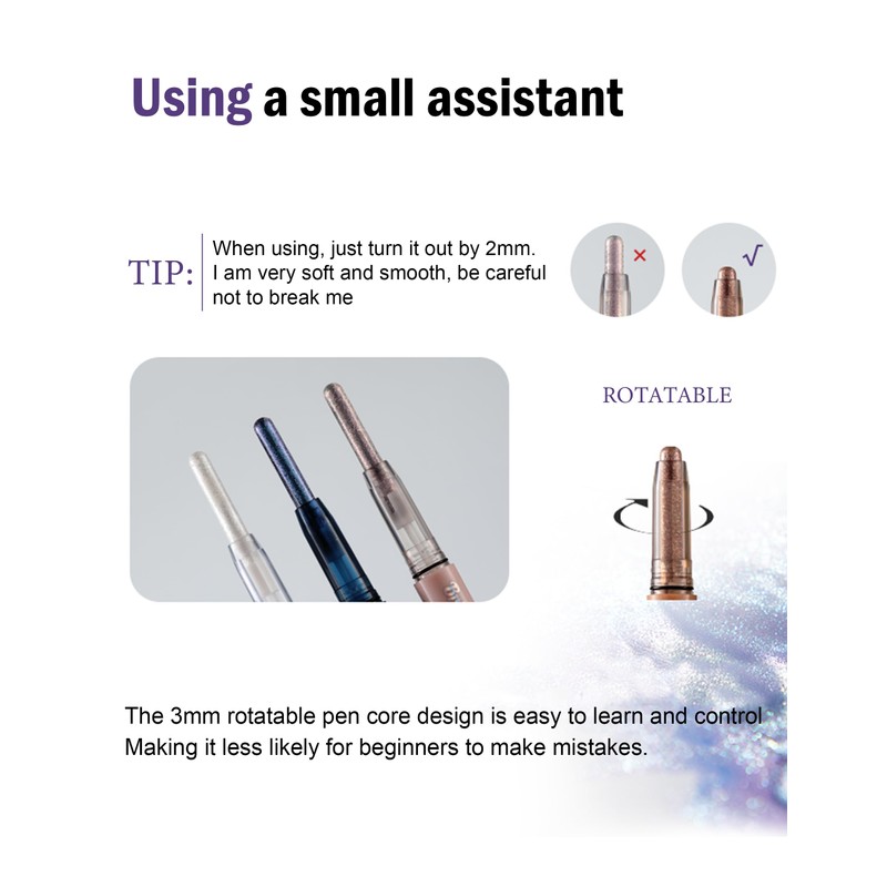 - 5.Multifunctional 4-in-1 Pen: Perfect as eye shadow, eyeliner, eye corner highlighter or lip highlighter, one product, many possibilities.