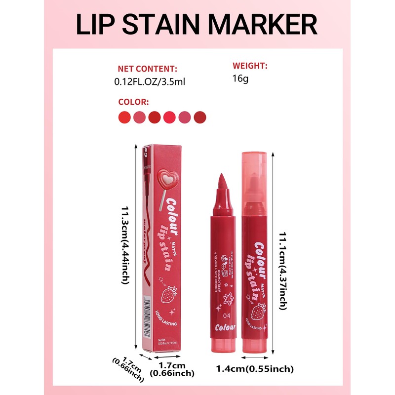 - 【LONG-LASTING MATTE LIP STAIN】This lip stain delivers bold, high-pigment color that locks in for hours. With a waterproof, smudge-proof, and transfer-proof finish, your lips stay perfectly tinted from morning to night