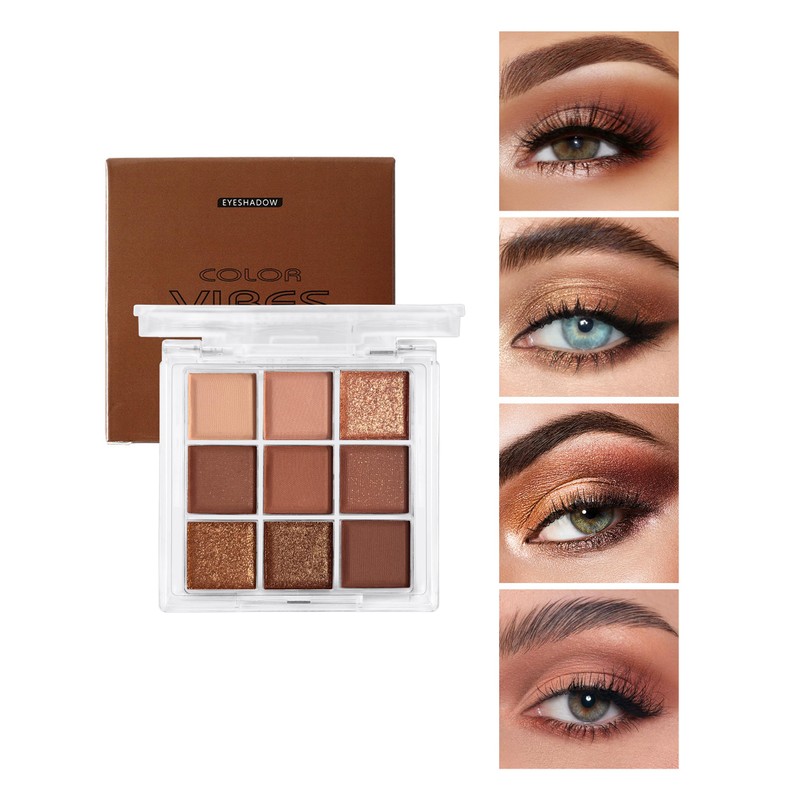 Erinde Paleta de sombras de ojos de 9 colores, con sombras mate y perladas, de alta pigmentación, duraderas y resistentes al agua, ideales para un maquillaje natural y neutro.
