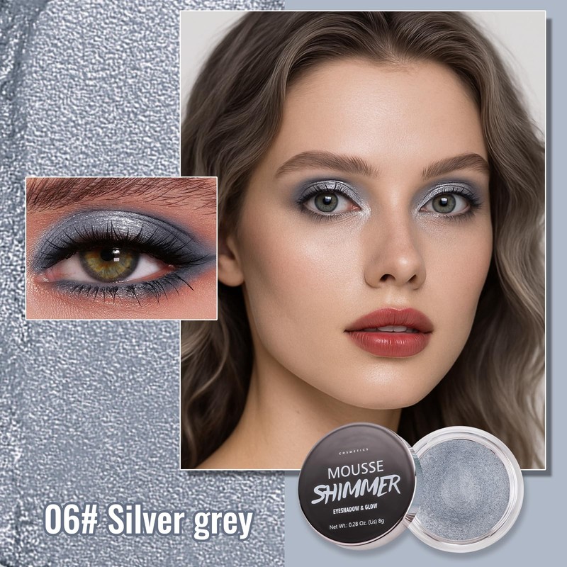 Erinde Shimmer Cream Eyeshadow, Highlighter Creme Eye Shadow Palette, Waterproof Long Lasting, Soft Shimmer Glitter Eye Brightener Makeup,Vegan & Cruelty, 06 Silver Grey