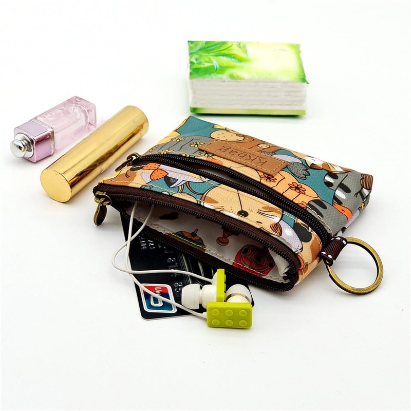 ERJUR Small Wallet for Women Men Coin Purse Change Holder Zipper Nylon Coin Purse with Keychain (Owl White)