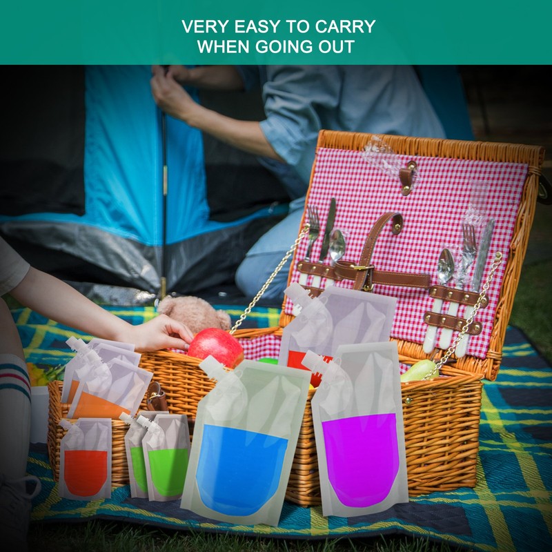 - COMCEALABLE PLASTIC POUCH - Each pouch has a screw cap, which helps to seal the bag tightly, collapsible plastic bags are not easy to broken, you can fold them for easy storage