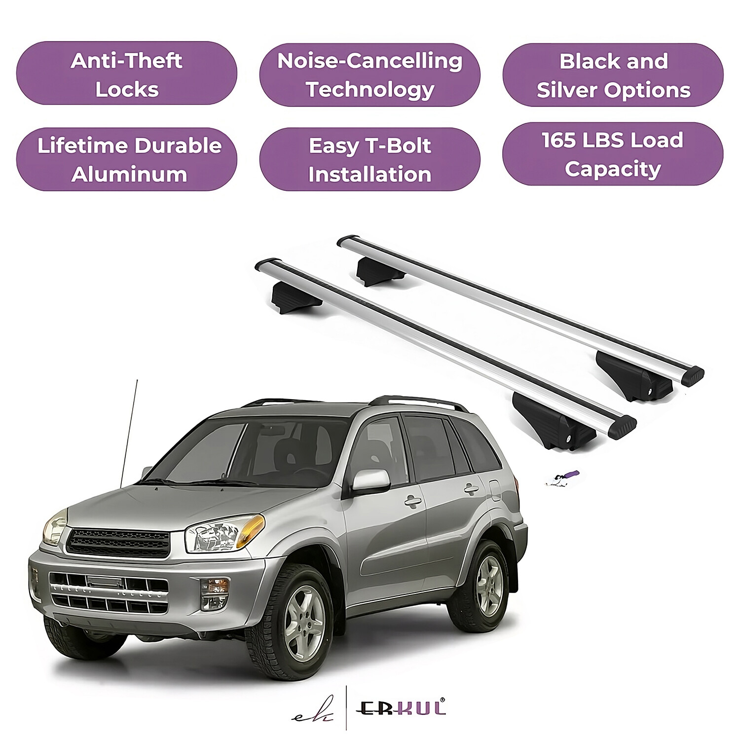 ERKUL Roof Rack Cross Bars for Toyota RAV4 1996-2006 for Raised Rails - Silver