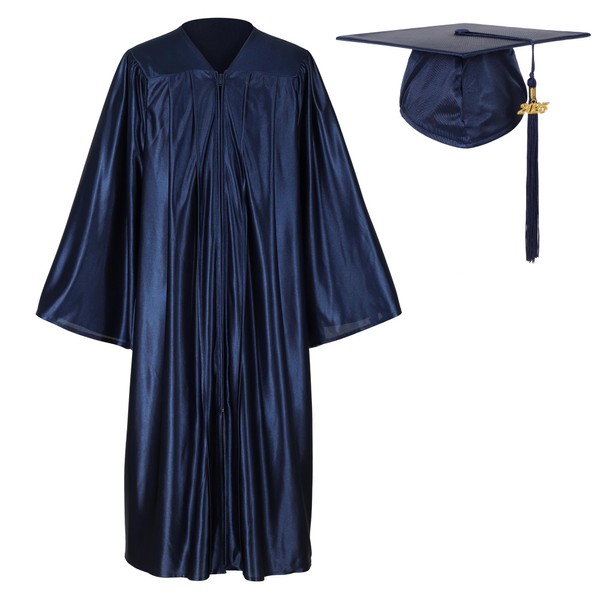 Erligo Unisex Shiny Graduation Gown and Cap Set with Tassel for Middle High School Bachelor (Navy Blue, 48)