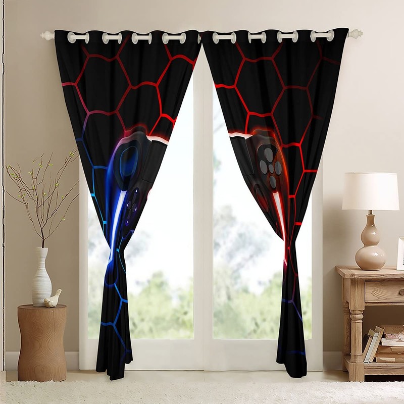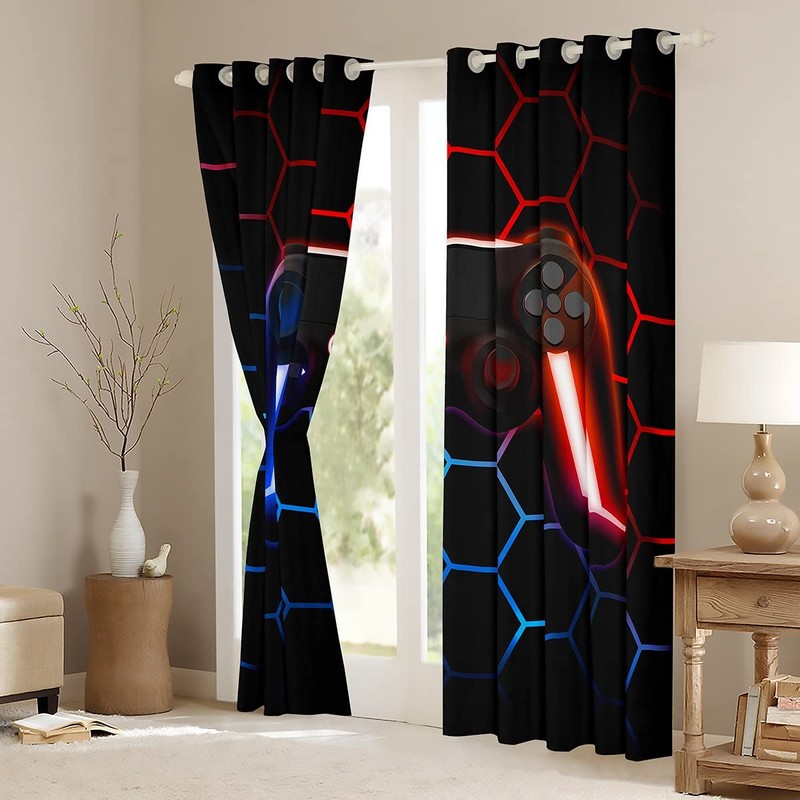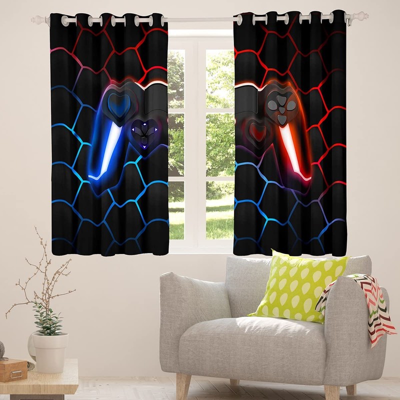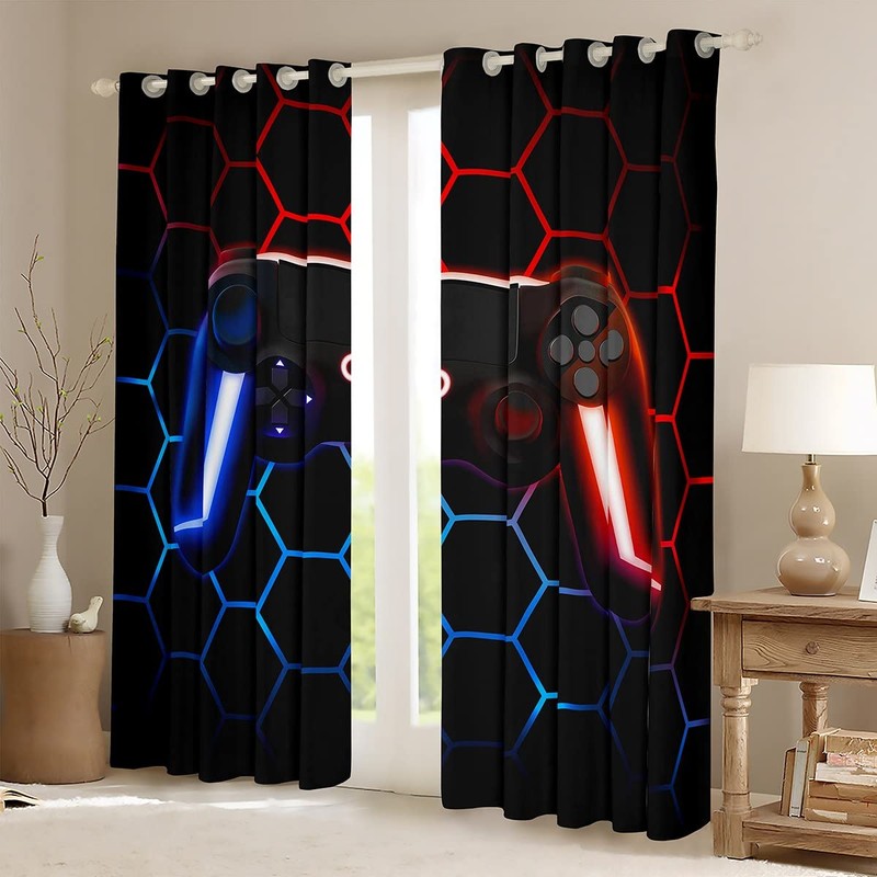 Erosebridal Gaming Curtains for Boys Kids Gamer Curtains 42x84 inch,Teens Gradient Red Blue Game Controller Curtains Drapes Playroom Decor Hippie Geometric Honeycomb Window Curtains 2 Panels