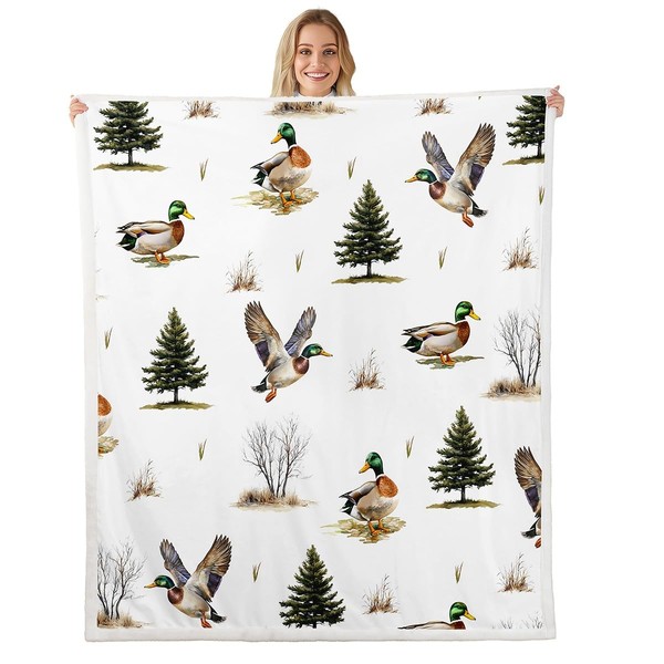 Erosebridal Mallard Duck Hunting Plush Blanket Baby 30x40,Woodland Tree Botanical Branches Soft Microfiber Blanket,Flying Duck Wildlife Safari Animal Fuzzy Blanket,Rustic Farmhouse Fleece Blanket