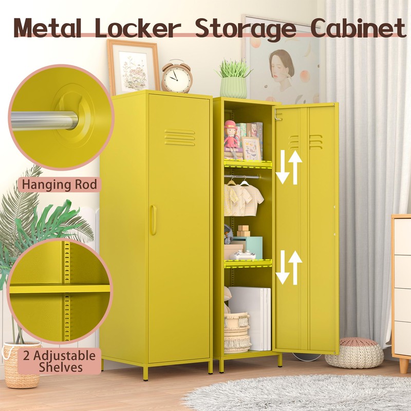 - 【High-Quality Metal Material】The storage locker cabinet is made of high quality cold-rolled steel, not easy to break and be damaged. Each load capacity up to 90 lbs each shelf, ensuring durability and stability for all your bedroom essentials.