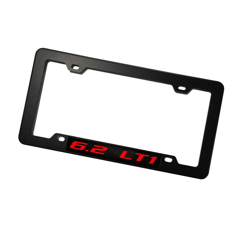 ERPART Black License Plate Tag Frame with 6.2 LT1 RED on Black Highly Polished Real Aluminum Emblem