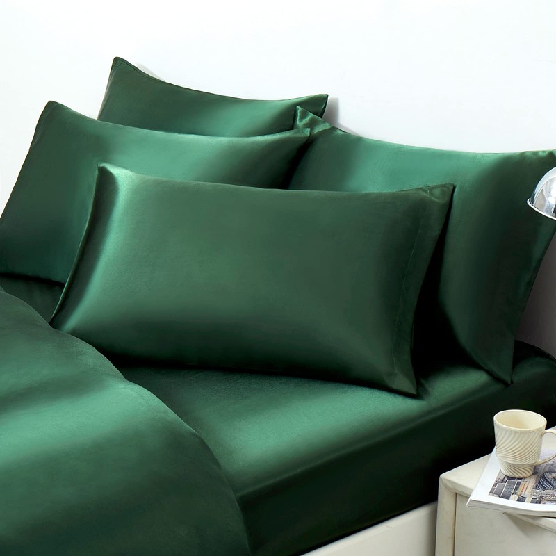 Ersmak Satin Pillowcase King Set of 2, Ultra Soft & Silky Satin Pillow Cases for Hair and Skin, Wrinkle Fade Resistant Pillow Covers with Envelope Closure (Dark Green)