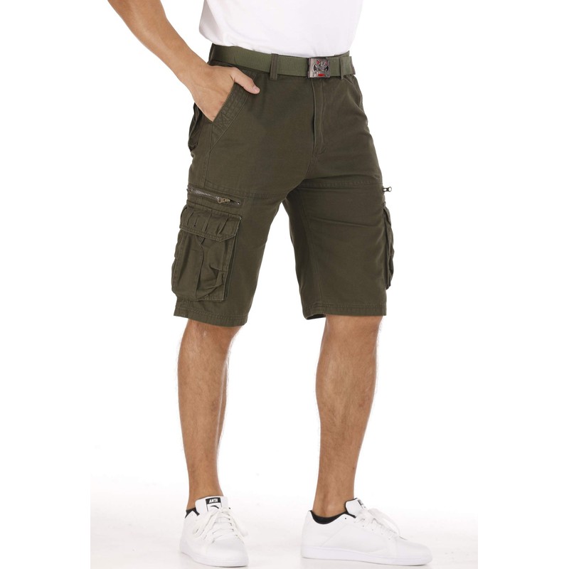 Erston Men's Lightweight Multi Pocket Casual Outdoor Twill Cargo Shorts with Zipper Pockets with 8 Pockets No Belt (Army Green, 32)
