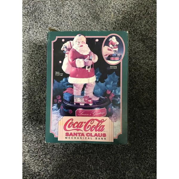 Coca Cola Santa Claus Ertl Die-Cast Metal Mechanical Coin Bank Moving Train 1993.