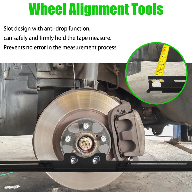 - Universal Compatibility - Front end alignment tool specifically designed to measure the coaxial distance of the wheel, can be adapted to a wide range of vehicles with different bolt patterns. Convenient removable design, facilitate storage and reduce storage space (Tape measure not included in purchased products)