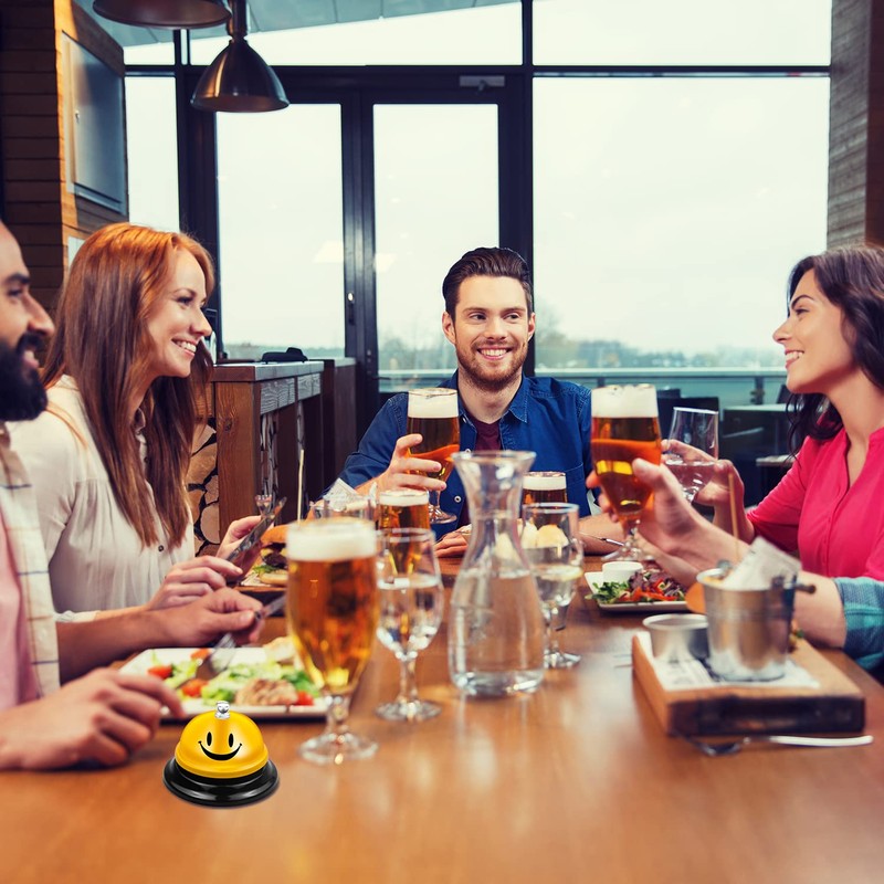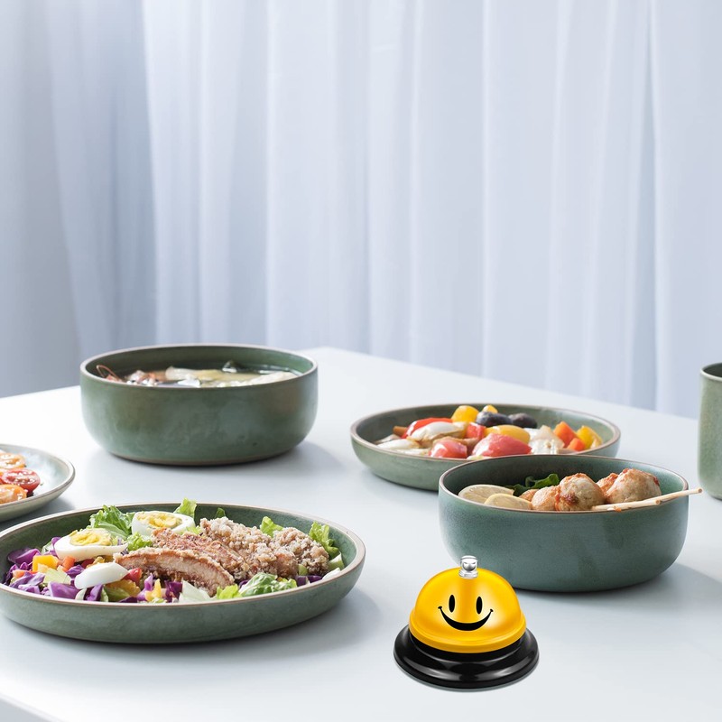 - ►【Cute Design】 Kitchen bell designed with smile pattern for eye-catching appeal and good mood and smiling service on your customers, associates, and partner; And the base is slip resistant, won't break your table; Very safe to use