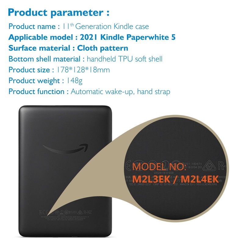 - 1. Compatibility: Designed for 6.8 inch Kindle Paperwhite (11th Generation, released in 2021) (Model No. M2L3EK / M2L4EK). Please check the model number on the back of your Kindle. (Not suitable for other Kindle Paperwhite released before 2021)