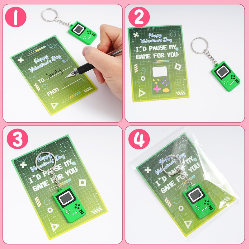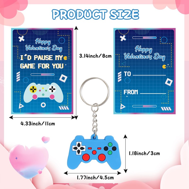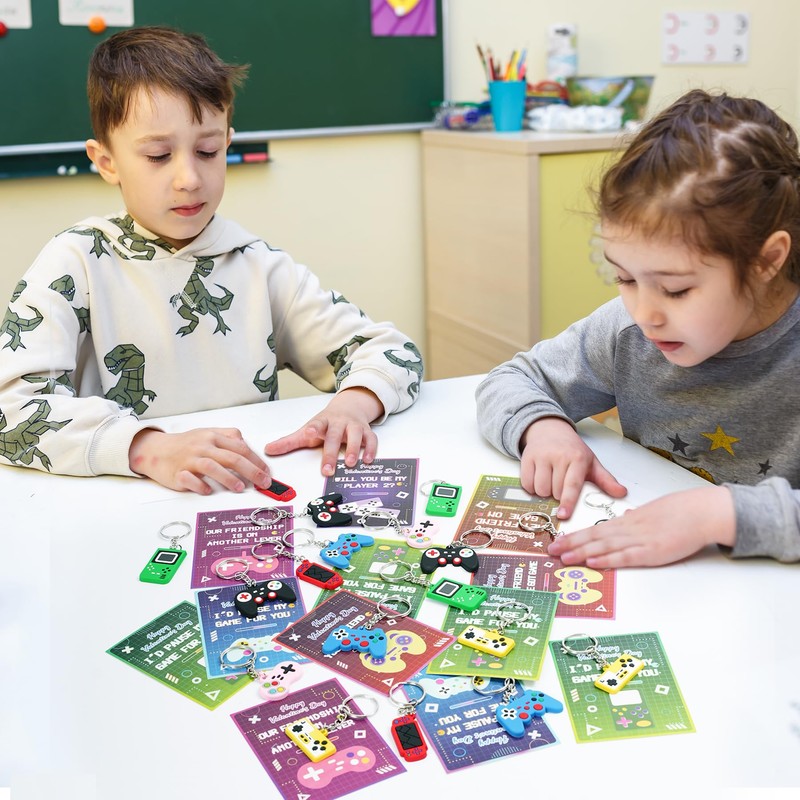 - VIDEO GAME CARD - Each Valentine's Day card has unique text and design that matches the keychain, creating a perfect combination. Children can write "to" and "from" on the cards to share love and happiness with friends and family, enjoy the fun of the toys, and improve their social skills.