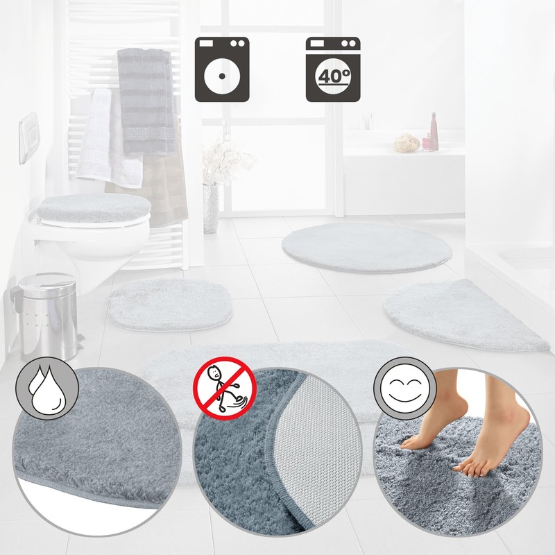 - The dense, wonderfully fluffy pile surrounds you in the bathroom with cuddly comfort. The back is coated with latex non-slip and suitable for underfloor heating