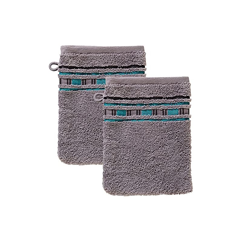 Erwin Müller Set of 2 Terry Towelling Wash Mitt Grey/Turquoise Size 16 x 21 cm